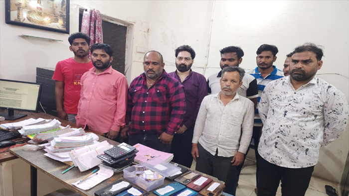 दरअसल इंदौर की एरोड्रम पुलिस को मुखबीर से सूचना मिली थी की एक आरोपी सट्टा चला रहा हे मुखबिर की सुचना पर पुलिस टीम ने सुविधि नगर से सट्टा लेते हुए आशीष को पकडा पूछताछ में आरोपी ने बताया की वह महेश तिरोले निवासी सिंगापुर सीटी सुपर कारिडोर के कहने पर सट्टा लेता है बाद आशीष के बताये अनुसार महेश तिरोले के घर सिंगापुर सीटी पर पुलिस ने दबिश देते मौके पर 07 व्यक्ति मोबाईल पर सट्टा लेते व लिखते मिले जिन्हे पुलिस व्दारा घेराबंदी कर पकड़ा जिनके नाम रितेश,योगेश,शेखर,पंकज,दिनेश,प्रदीप और महेश बताया जिनके पास लाखो रुपये का हिसाब कल्याण के सट्टे का मिला व 11 मोबाईल फोन 07 केलकुलेटर नगदी 15 हजार रुपये मिले आरोपियो से पुछताछ में बताया की वो शिवराम रघुवंशी निवासी कुशवाह नगर के व्दारा कमीशन पर सट्टा लेते हे जिसके बाद पुलिस ने आरोपी शिवराम को कुशवाह नगर बाणगंगा से पकडा जिसके कब्जे से सट्टा अंक पर्चिया एक मोबाईल फोन व नगदी 1200 रुपये जप्त किये गये सभी आरोपियो के विरुध्द धारा 4 क सट्टा एक्ट के तहत दर्ज कर पूछताछ शुरू की…