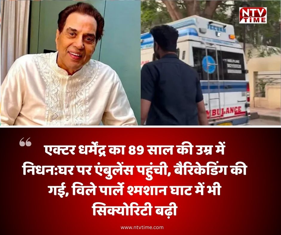 एनटीवी टाइम न्यूज/ बॉलीवुड के दिग्गज अभिनेता धर्मेंद्र अब हमारे बीच नहीं रहे। आज यानी 89 साल की उम्र में उन्होंने मुंबई स्थित अपने घर पर अंतिम सांस ली और इस दुनिया को अलविदा कह दिया। पिछले कुछ दिनों से वह बीमार थे और लंबे समय तक अस्पताल में थे। लेकिन, आज उनका निधन हो गया।