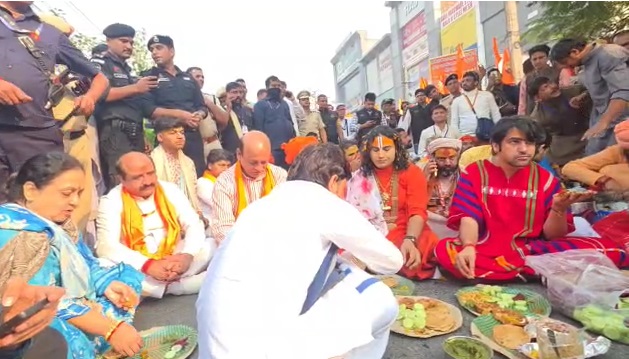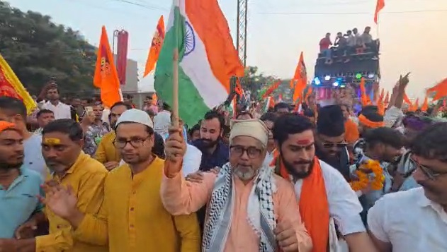 एनटीवी टाइम न्यूज/बागेश्वर धाम सरकार की तीसरे दिन की पदयात्रा का सीकरी के एक मैदान में विराम हुआ। लाखों की तादाद में लोग इस पदयात्रा के साक्षी बने। फरीदाबाद से सीकरी के बीच करीब 10 लाख लोग अपनी आंखों से पदयात्रा को निहारते रहे। बागेश्वर महाराज दीन-दुखियों, बिछड़ों-पिछड़ों को गले लगाते हुए आगे बढ़ रहे थे। पद यात्रा के दौरान गंगा जमुनी तहजीब का एक अनोखा नजारा देखने को मिला। जहां दशहरा ग्राउंड बल्लभगढ़ के आगे NH पर JCB चौक पर फैज खान के साथ हाथों में तिरंगा झंडा लेकर दर्जनों मुस्लिमों ने बागेश्वर महाराज का स्वागत किया। मुस्लिम समाज द्वारा महाराज को बांके बिहारी लाल की फोटो भेंट कर स्वागत किया गया। इस दौरान मुस्लिम सदस्य महाराज के साथ सेल्फी लेते रहे। सभी मुस्लिम समाज के सदस्यों ने महाराज को भगवा टोपी पहनाई और आशीर्वाद प्राप्त लिया और ग्रुप फोटो खिंचवाई।