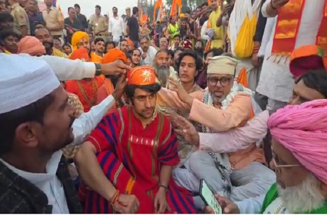एनटीवी टाइम न्यूज/बागेश्वर धाम सरकार की तीसरे दिन की पदयात्रा का सीकरी के एक मैदान में विराम हुआ। लाखों की तादाद में लोग इस पदयात्रा के साक्षी बने। फरीदाबाद से सीकरी के बीच करीब 10 लाख लोग अपनी आंखों से पदयात्रा को निहारते रहे। बागेश्वर महाराज दीन-दुखियों, बिछड़ों-पिछड़ों को गले लगाते हुए आगे बढ़ रहे थे। पद यात्रा के दौरान गंगा जमुनी तहजीब का एक अनोखा नजारा देखने को मिला। जहां दशहरा ग्राउंड बल्लभगढ़ के आगे NH पर JCB चौक पर फैज खान के साथ हाथों में तिरंगा झंडा लेकर दर्जनों मुस्लिमों ने बागेश्वर महाराज का स्वागत किया। मुस्लिम समाज द्वारा महाराज को बांके बिहारी लाल की फोटो भेंट कर स्वागत किया गया। इस दौरान मुस्लिम सदस्य महाराज के साथ सेल्फी लेते रहे। सभी मुस्लिम समाज के सदस्यों ने महाराज को भगवा टोपी पहनाई और आशीर्वाद प्राप्त लिया और ग्रुप फोटो खिंचवाई।