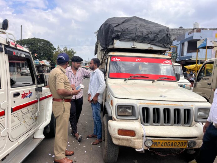 एनटीवी टाइम न्यूज पीथमपुर/ औद्योगिक नगर पीथमपुर में यातायात नियमों का कड़ाई से पालन कराने और सड़क दुर्घटनाओं को कम करने के उद्देश्य से ‘रोको-टोको’ अभियान चलाया जा रहा है। इसी क्रम में संजय जलाशय चौकी पुलिस ने चालानी कार्रवाई की। बीती शाम और बुधवार सुबह, आयशर चौराहे पर 36 से अधिक दोपहिया और चारपहिया वाहन चालकों के चालान काटे गए।