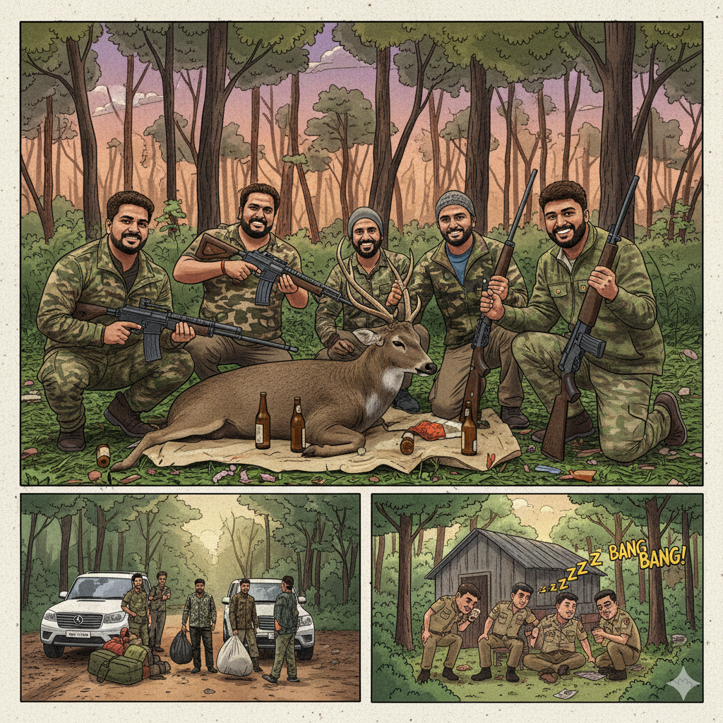 1. शिकार के बाद जंगल में ‘जश्न’: कानून का कोई डर नहीं
