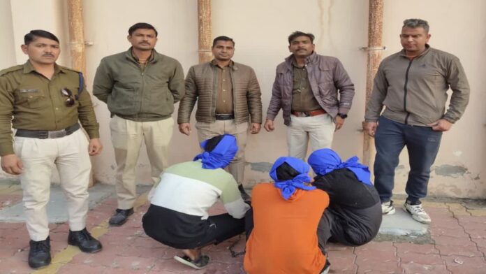 एनटीवी टाइम न्यूज विदिशा/ शहर के व्यस्त खरीफाटक रोड पर स्थित अरिहंत ज्वैलर्स में हुई सनसनीखेज डकैती का पुलिस अधीक्षक रोहित केशवानी ने रविवार को खुलासा कर दिया. करीब एक सप्ताह तक चली गहन जांच, सैकड़ों सीसीटीवी फुटेज की बारीकी से पड़ताल और 180 से अधिक संदिग्धों से पूछताछ के बाद कोतवाली पुलिस ने वारदात में शामिल तीन आरोपियों अमन वंशकार (22), राम सिंह पारदी (26), कालीचरण पारदी (25) के अलावा दो नाबालिगों को गुना से गिरफ्तार किया है. आरोपियों के कब्जे से करीब 13 लाख रुपये मूल्य का चोरी का सामान और घटना में इस्तेमाल वाहन भी जब्त किया है.
