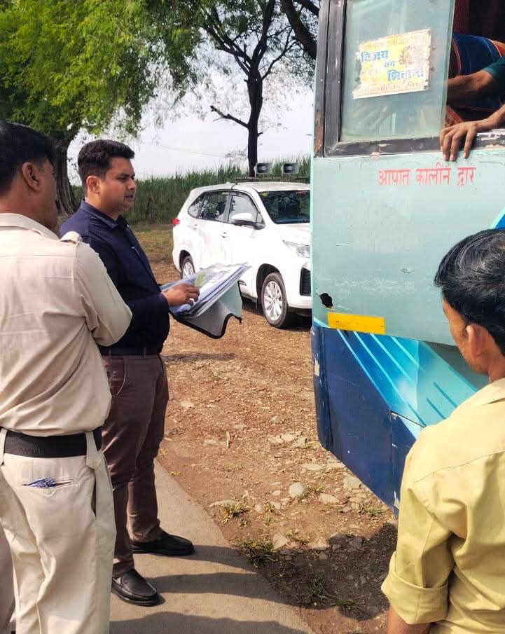 सोमवार, 27 अक्टूबर को परिवहन विभाग की टीम ने जिले के विभिन्न क्षेत्रों में कुल 24 स्कूली एवं यात्री बसों की जांच की। इस दौरान बसों में सुरक्षा मानकों की गहन पड़ताल की गई। जांच टीम ने विशेष रूप से अग्निशमन यंत्र, आपातकालीन द्वार, परमिट, फिटनेस सर्टिफिकेट, पॉल्यूशन अंडर कंट्रोल (PUC) तथा अन्य आवश्यक दस्तावेजों को परखा।