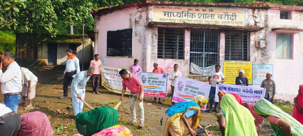 मुख्यकार्यपालन अधिकारी जनपद शहपुरा सीईओ श्री प्रमोद ओझा सर जी के निर्देशानुसार संगीता सोनी जिला समन्वयक SBM ,श्री योगेंद्र झारिया ब्लॉक समन्वयक SBM के मार्गदर्शन में स्वच्छ्ता ही सेवा पखवाड़ा एक दिन, एक घंटा,एक साथ, कार्यक्रम का आयोजन आज दिनांक को ग्राम पंचायत बरौदी माल में आयोजित किया गया जिसमें सम्माननीय जनपद अध्यक्ष श्रीमति प्रियंका आर्मो मैडम जी,जनपद उपाध्यक्ष श्री जितेन्द्र चंदेलजी,ग्राम सरपंच सिया बाई धुर्वे,सचिव नारद सिंह मरावी ,पैसा मोबाइलाइजर राम जी झरिया,समस्त NRLM टीम,जल संसाधन टीम,समग्र शिक्षा विभाग, स्वास्थ विभाग,एवं जनपद स्तरीय शहपुरा विकास खंड कार्यक्रम का आयोजन किया गया जिसमें ग्राम को स्वच्छ ,गली मोहल्ले,घर को स्वच्छ बनने रखने के लिए जानकारी दिया गया साथ मिल कर पूरे गांव और समस्त शासकीय भवन का की साफ सफाई किया गया व स्वच्छता के लिए शपथ ग्रहण कराया गया साथ ही जल संसाधन की टीम श्री धर्म वीर सर जी के द्वारा जल परीक्षण व स्वच्छ जल पीने, नल ,हैंडपंड, कुंवा,को कैसे साफ सफाई रखें जानकारी दिया